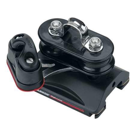 Harken® ball bearing traveler cars with multipart purchases allow easy adjustment of loaded sails from the cockpit.